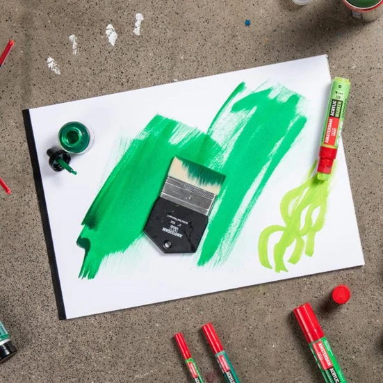 Amsterdam ist der perfekte Begleiter auf deiner kreativen Reise, von der Vorbereitung bis hin zum fertiggestellten Werk. Wir bieten dir das umfangreichste Farben-Sortiment an, damit du neue Möglichkeiten erkunden und das ganze Potenzial von Acrylfarbe nutzen kannst. Daneben bieten wir eine beeindruckende Auswahl an Hilfsmitteln an: insgesamt 35 verschiedene Gesso, Malmittel, Firnisse und mehr. Jedes Hilfsmittel besteht aus qualitativ hochwertigen Zutaten und wurde eigens zusammengestellt, um ein bestimmtes Ergebnis zu erzielen. Eine ideale Ergänzung zur Verwendung mit den Produkten der Standard-Serie oder der Expert-Serie von Amsterdam.
